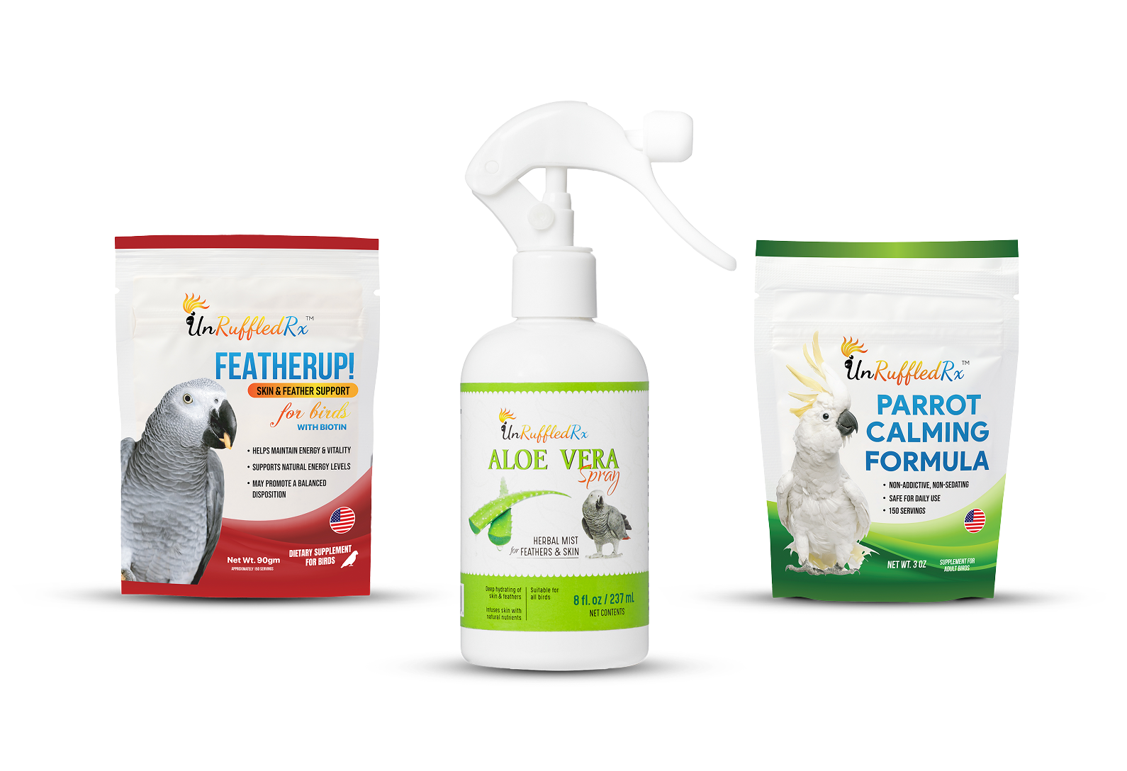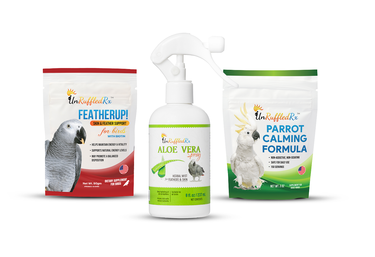 I use all your products that's what helped my wonderful Christopher, a Goffin's Cockatoo, from plucking himself bald! He started chewing his chest, thats how it always starts, and everyone I know who has a Goffin's Cockatoo, has the same problem... They start plucking their chest, to the point they are bleeding, and scabbed up... 😱 So I started using Red Parrot, your red palm oil, and Aloe Vera mist... The results were practically overnight! Healing too a few days, and feathers grow in. I then started adding some of your other products, such as your Featherup! Your Feathered growth formula, as well as Parrot Calming, and Feather soft in his bath!
